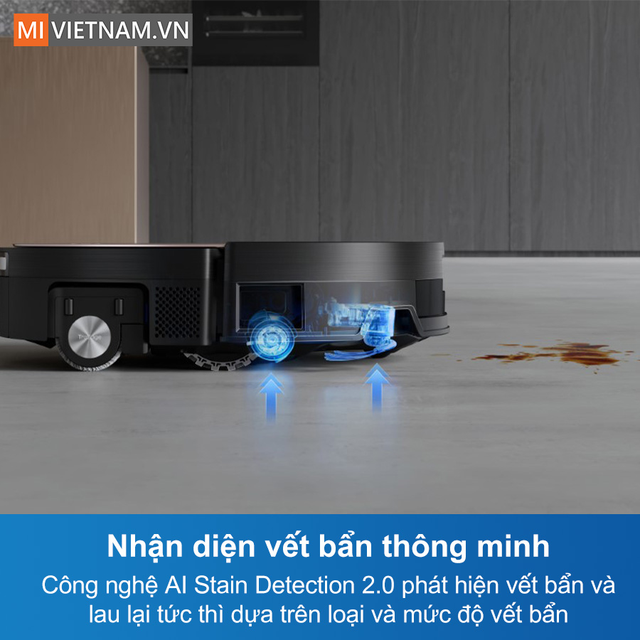 - Khi phát hiện vết bẩn ướt: cả chổi chính và chổi phụ được nâng cao để tránh lan rộng, đồng thời kích hoạt chế độ đặc biệt xử lý vết bẩn dạng ướt.