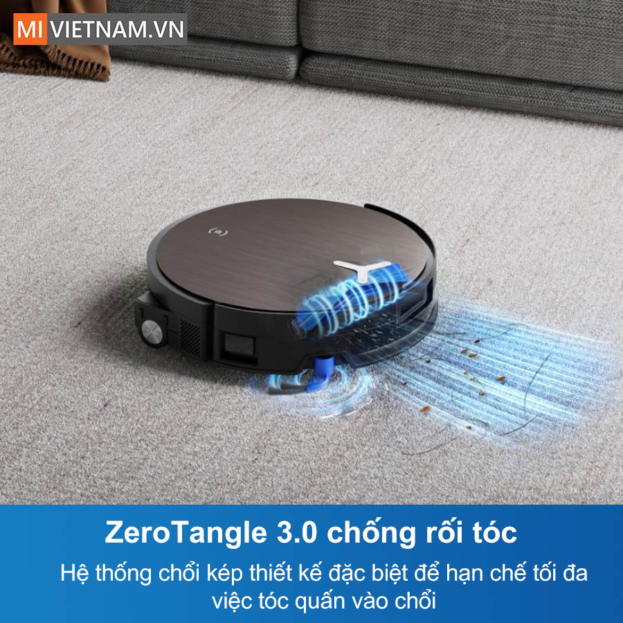 Một trong những nỗi lo lớn khi sử dụng robot hút bụi là tóc dễ bị quấn vào chổi. Với ZeroTangle 3.0, vấn đề này được giải quyết hoàn toàn. Hệ thống bao gồm chổi cạnh ARClean và con lăn dẫn hướng Cyclone được thiết kế theo cấu trúc xoắn ốc và lông chổi cong thông minh, giúp hạn chế tối đa việc tóc quấn.