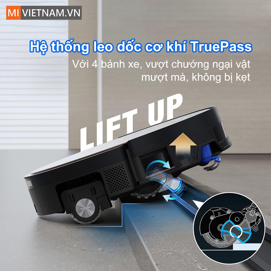 Nhờ đó, robot có thể vượt qua ngưỡng đơn cao tới 2.4 cm và thậm chí hai ngưỡng liên tiếp cao 4cm mà không bị kẹt. Không giống như các hệ thống dựa trên camera, TruePass được kích hoạt ngay khi tiếp xúc, đảm bảo quá trình làm sạch luôn mượt mà, không lỗi, không bỏ sót và không gián đoạn.
