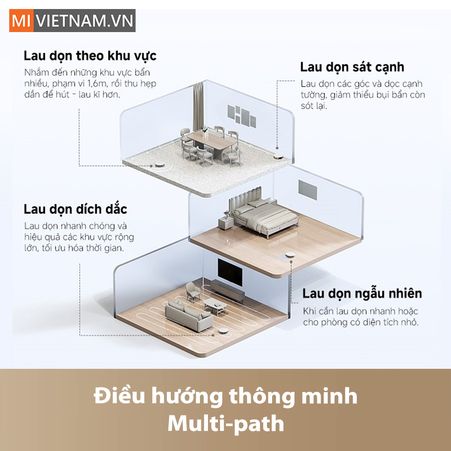 - Điều hướng Multi-path với 4 lộ trình tối ưu thao tác dọn dẹp nhanh và hiệu quả.