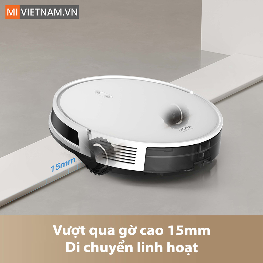 Robot Mova E10 có thể vượt qua các vật cản cao đến 15mm như mép thảm, dây cáp hay gờ cửa phòng tắm, đảm bảo quá trình làm sạch không bị gián đoạn khi chuyển đổi giữa các không gian khác nhau.