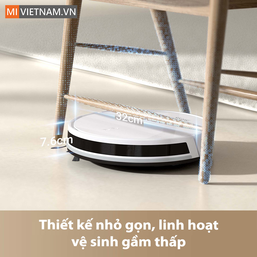 Robot hút bụi lau nhà Mova E10 sở hữu thân máy mỏng chỉ 7,6cm cùng đường kính 32cm, cho phép dễ dàng di chuyển vào những khu vực thấp như gầm sofa, gầm giường hay sát chân tủ. Kiểu dáng gọn gàng giúp robot linh hoạt luồn lách trong không gian hẹp, mở rộng phạm vi làm sạch mà các thiết bị truyền thống khó tiếp cận.