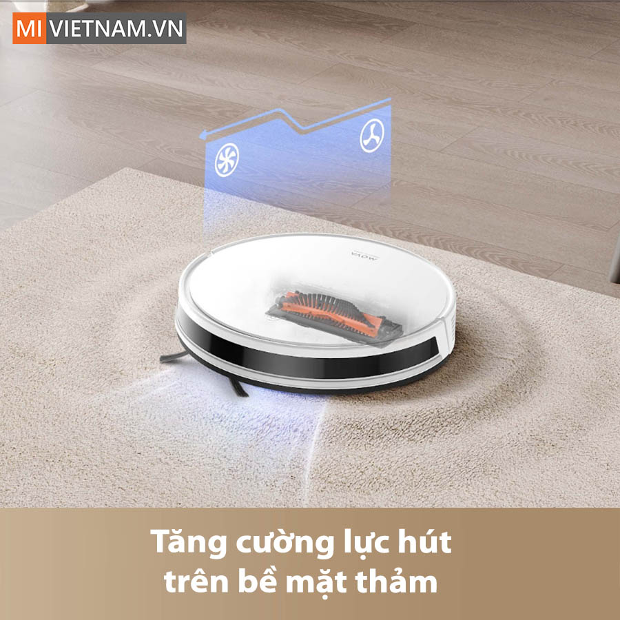 Khi phát hiện thảm, robot Mova E10 sẽ tự động nâng lực hút lên mức cao nhất nhằm làm sạch sâu bụi bẩn và lông thú cưng. Tính năng này đặc biệt hữu ích với các khu vực thảm trải sàn cần vệ sinh kỹ lưỡng.