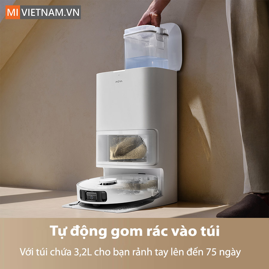 - Lực hút mạnh 19.000Pa từ động cơ MOVA 90.000 vòng/phút, làm sạch nhanh và êm ái.
