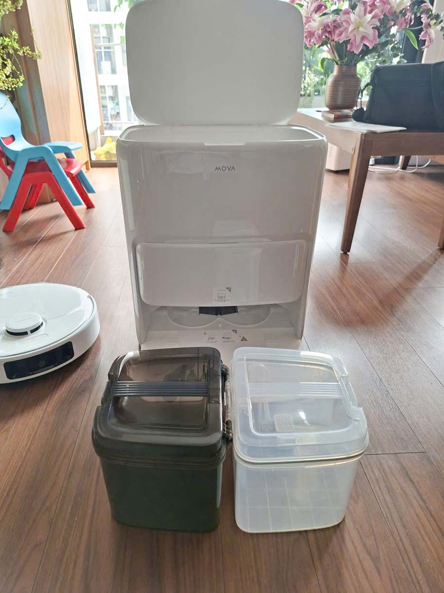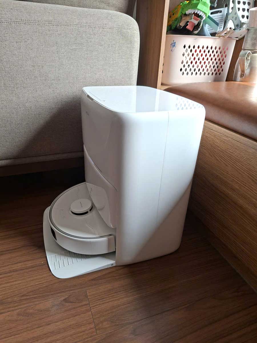 Robot sẽ tự động đổ bụi vào túi chứa dung tích 3,2 L đặt trong dock sạc. Với tần suất sử dụng thông thường, người dùng có thể không cần chạm tay đổ bụi lên đến 75 ngày, tiết kiệm thời gian và đảm bảo vệ sinh tối ưu.