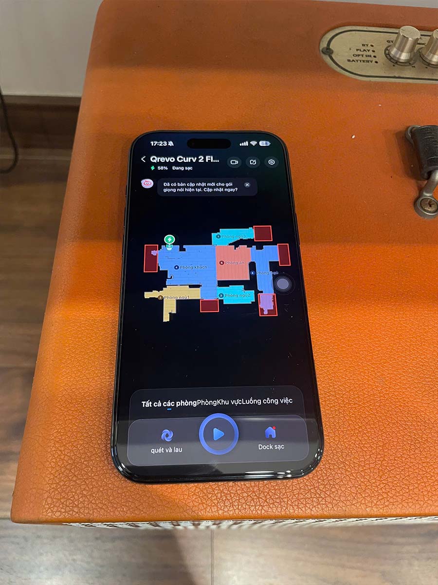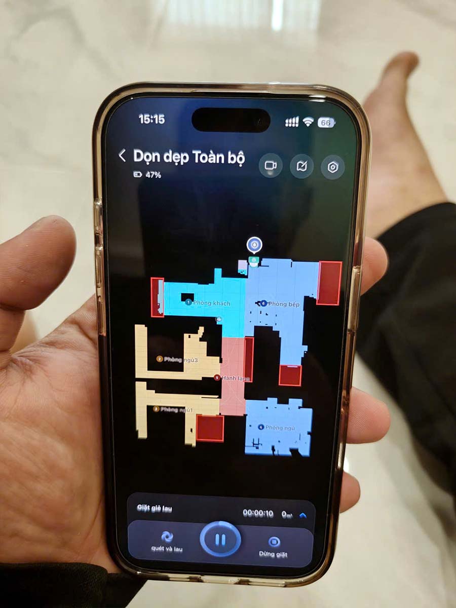 Mọi hoạt động của robot được theo dõi và hiển thị trực quan, từ tiến độ quét, lau cho đến những tình huống bất thường. Người dùng dễ dàng nắm bắt toàn bộ quy trình ngay trên ứng dụng, đảm bảo quá trình làm sạch luôn minh bạch và hiệu quả.