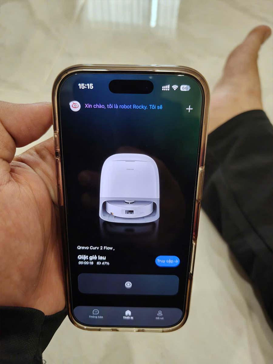Người dùng có thể điều khiển robot Roborock Qrevo Curv 2 Flow từ xa qua ứng dụng Roborock: theo dõi bản đồ làm sạch, hẹn lịch vệ sinh, bật/tắt chế độ chuyên biệt, hoặc kích hoạt giặt khăn lau bằng nước nóng. Đồng thời, robot cũng hỗ trợ điều khiển bằng giọng nói thông qua Siri, Alexa hay Google Assistant, mang lại trải nghiệm rảnh tay, hiện đại và tiện nghi hơn bao giờ hết. Không chỉ vậy, robot còn hỗ trợ Matter protocol, cho phép kết nối đa nền tảng và dễ dàng tích hợp vào hệ sinh thái Apple Home cũng như nhiều thiết bị nhà thông minh khác.