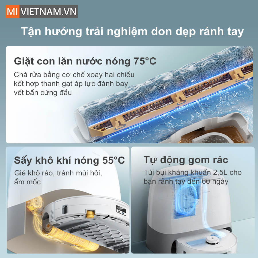 Thu gom bụi tự động, 60 ngày không cần đổ rác