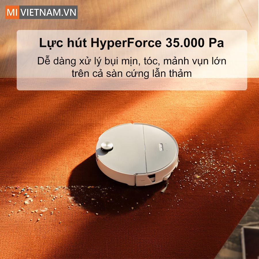 • Lực hút HyperForce 35.000 Pa xử lý bụi mịn, tóc và rác lớn hiệu quả