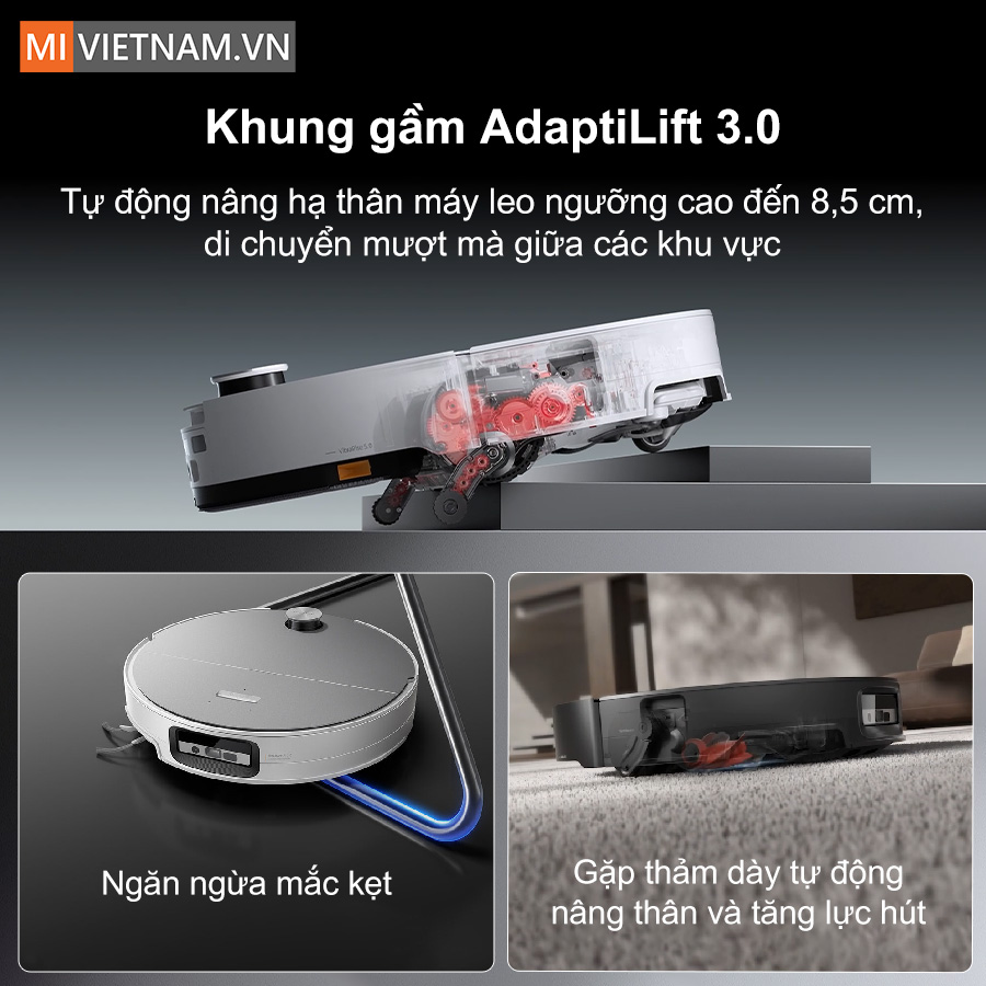 • Khung gầm AdaptiLift 3.0 vượt ngưỡng cao đến 8,5 cm, tối ưu nhà nhiều bậc