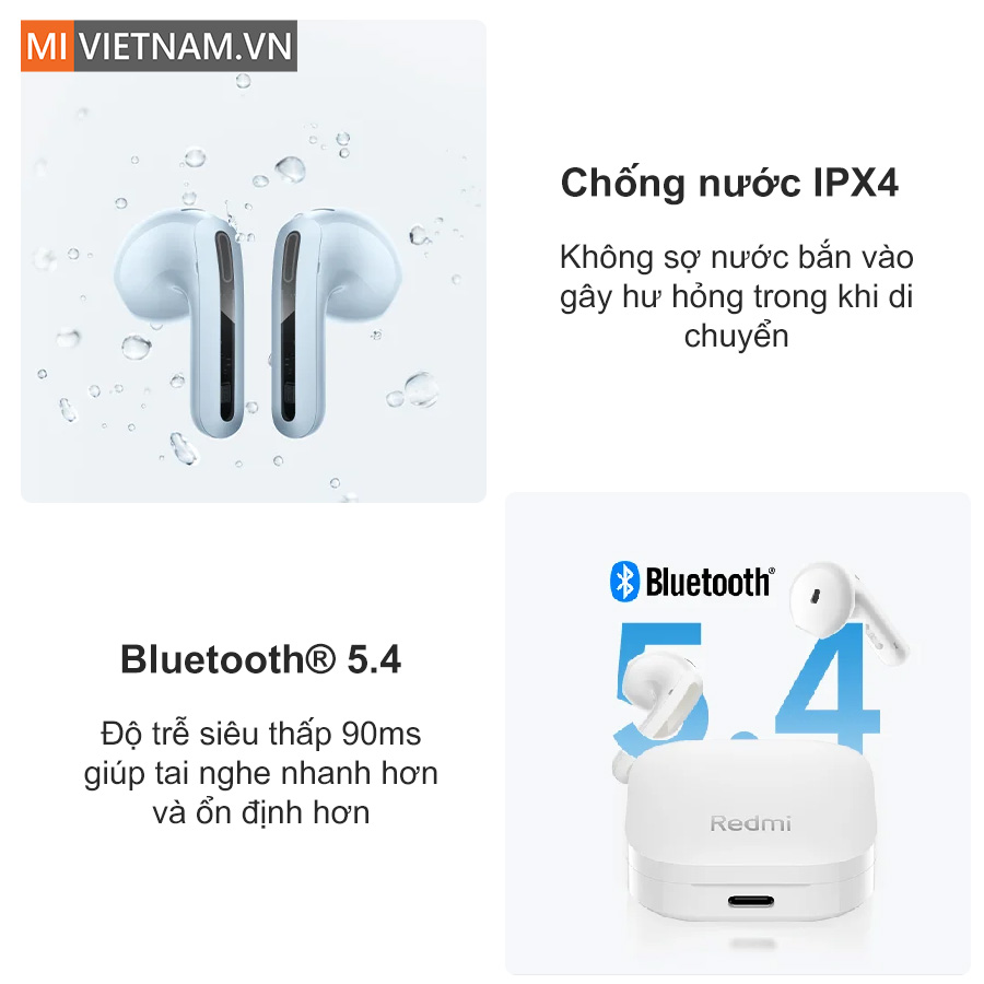 - Chuẩn kháng nước IPX4 an tâm tập luyện và hoạt động ngoài trời