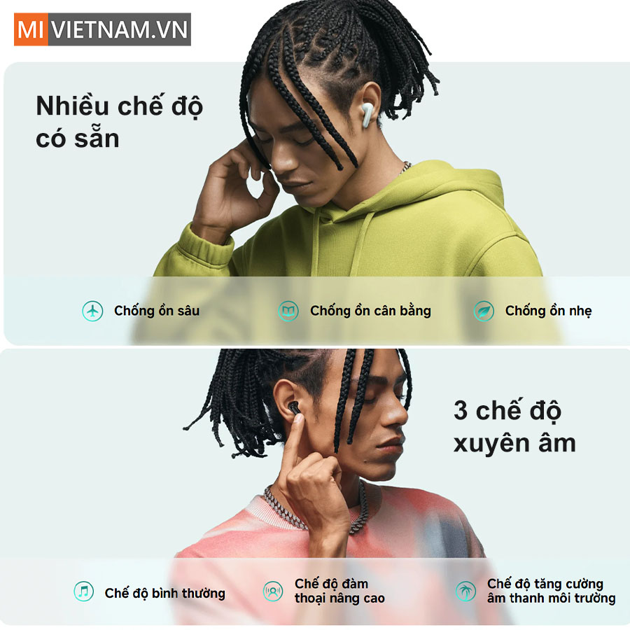 - Khử ồn chủ động lên đến 49dB, 3 chế độ linh hoạt theo môi trường