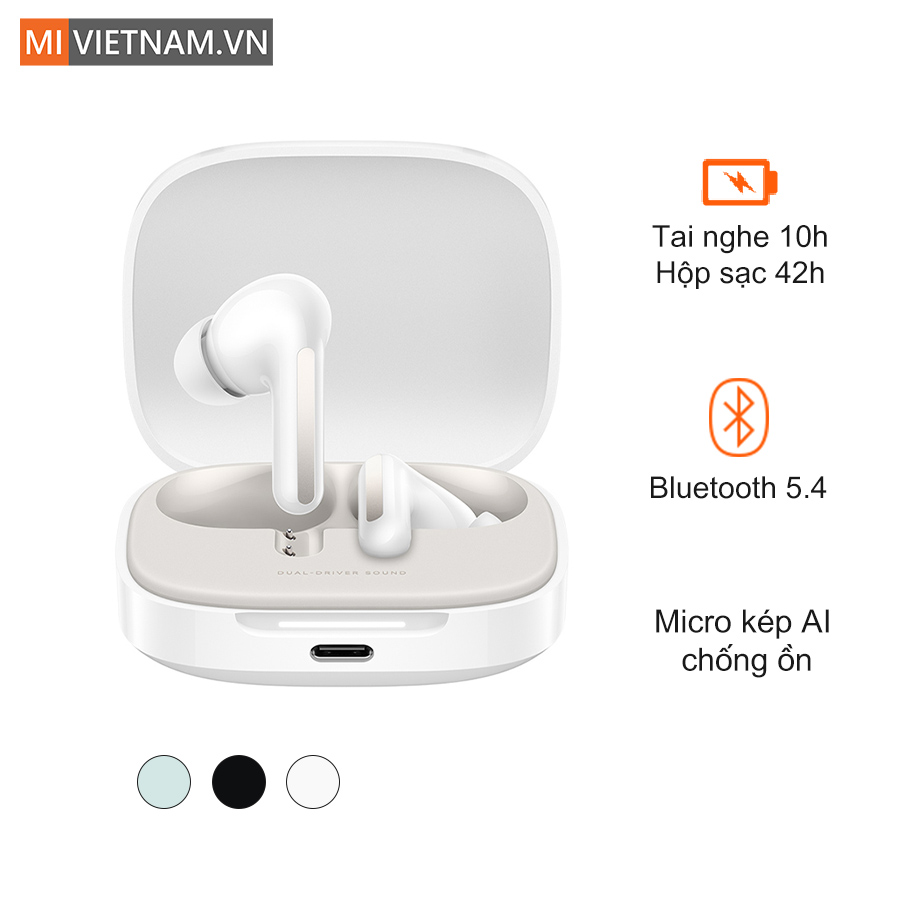 Tai nghe Xiaomi Redmi Buds 6 nổi bật với công nghệ chống ồn 49dB, âm thanh Hi-Res Audio sắc nét cùng kết nối Bluetooth 5.4 ổn định. Thiết kế nhỏ gọn, pin bền bỉ đến 10 giờ và khả năng tùy chỉnh thông minh qua app mang đến trải nghiệm nghe nhạc hiện đại, trọn vẹn hơn mỗi ngày.