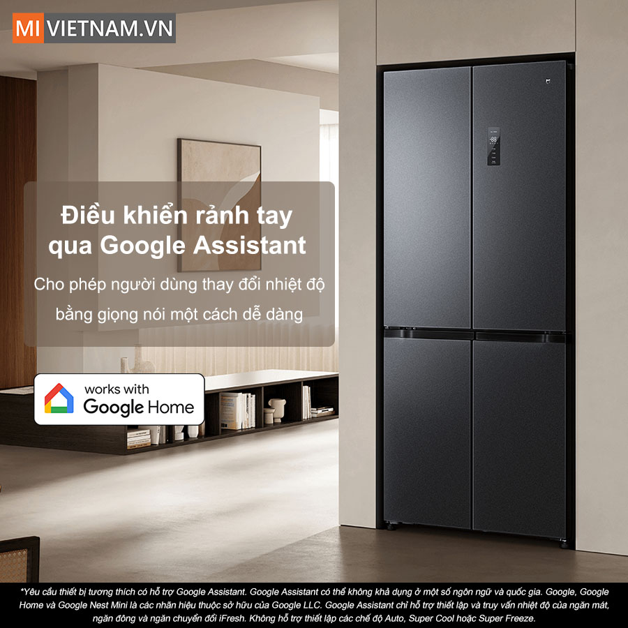 Sản phẩm hỗ trợ điều khiển từ xa thông qua ứng dụng Xiaomi Home, cho phép người dùng dễ dàng cài đặt nhiệt độ, chuyển đổi chế độ làm lạnh hoặc theo dõi tình trạng hoạt động của tủ ngay trên điện thoại. Không chỉ dừng lại ở đó, hệ thống còn hỗ trợ cập nhật OTA, giúp tủ lạnh luôn được tối ưu về hiệu năng và tính năng mới. Ngoài ra, bạn cũng có thể điều khiển bằng giọng nói vô cùng tiện lợi. Với sự kết nối thông minh này, bạn hoàn toàn có thể quản lý thiết bị mọi lúc, mọi nơi, tận hưởng cuộc sống tiện nghi hơn.