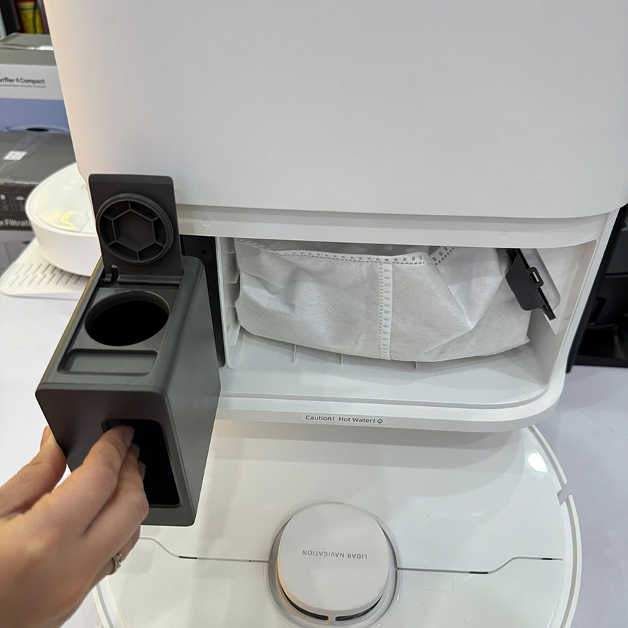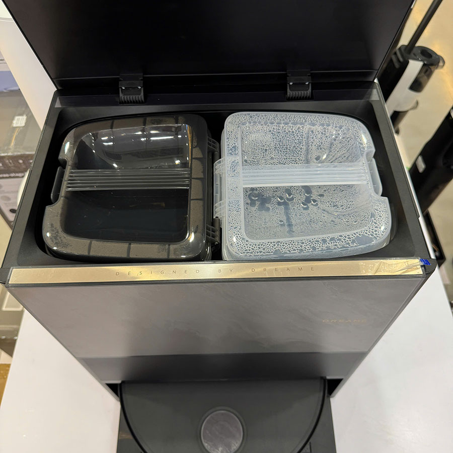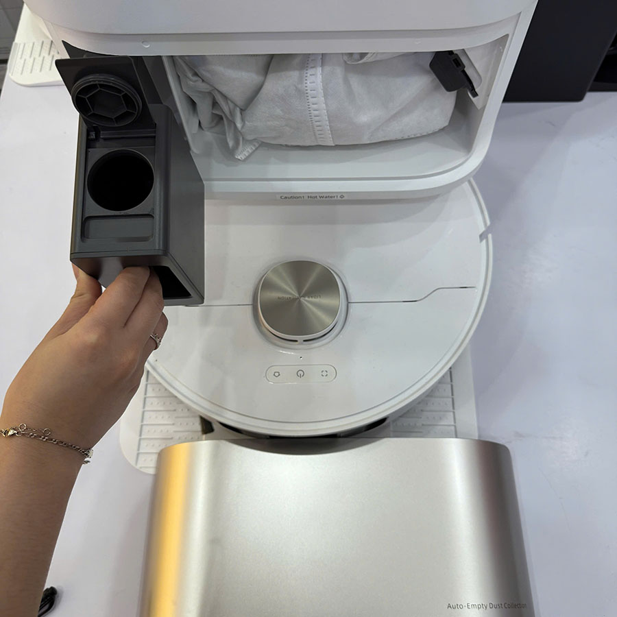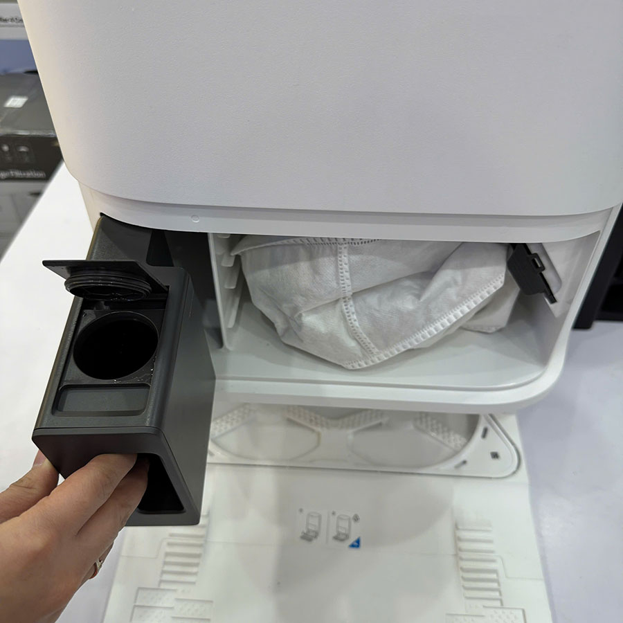 • Giặt giẻ nước nóng: Trạm sạc tự động giặt khăn bằng nước nóng 60°C, đánh bay dầu mỡ và sấy khô khí nóng 45°C.