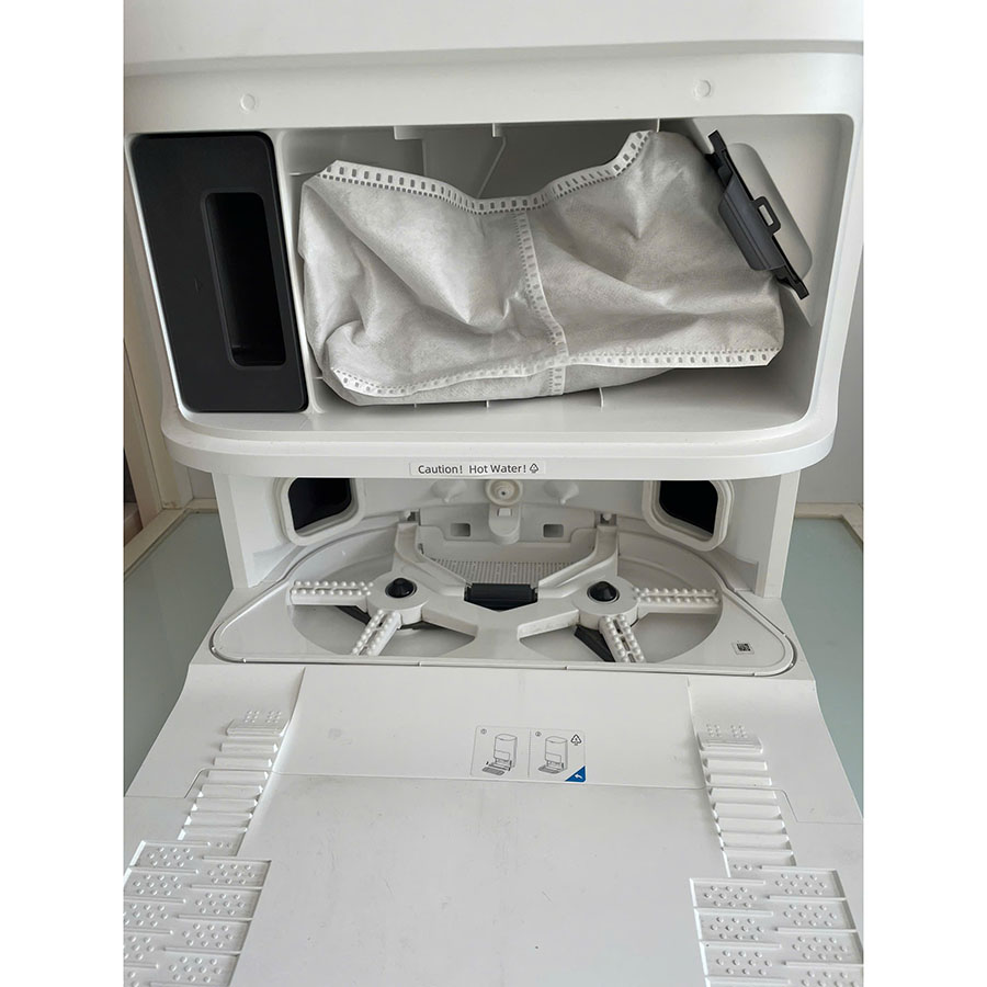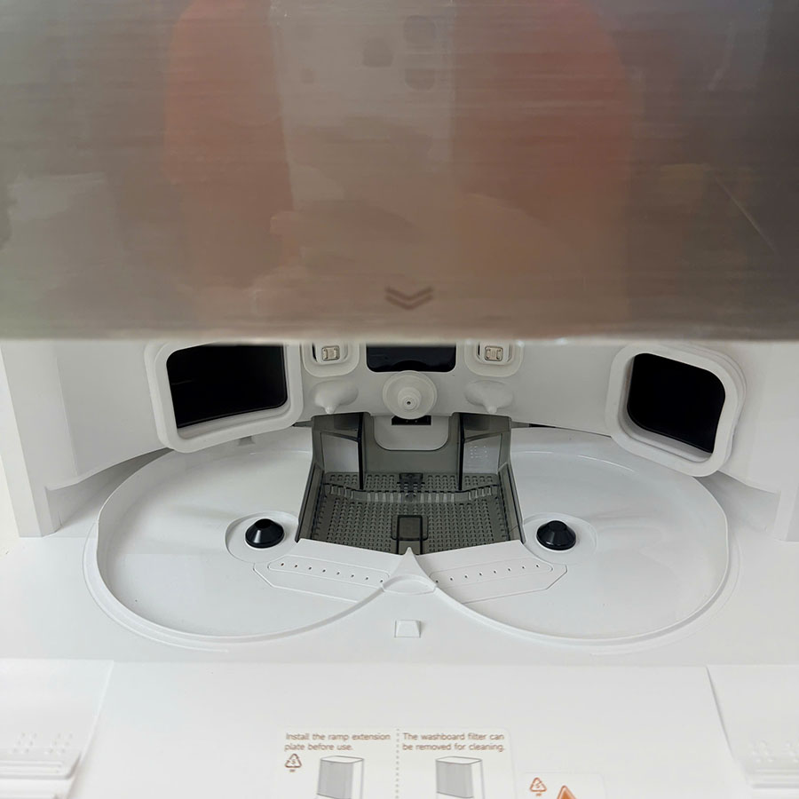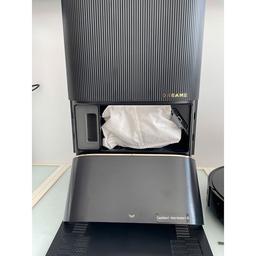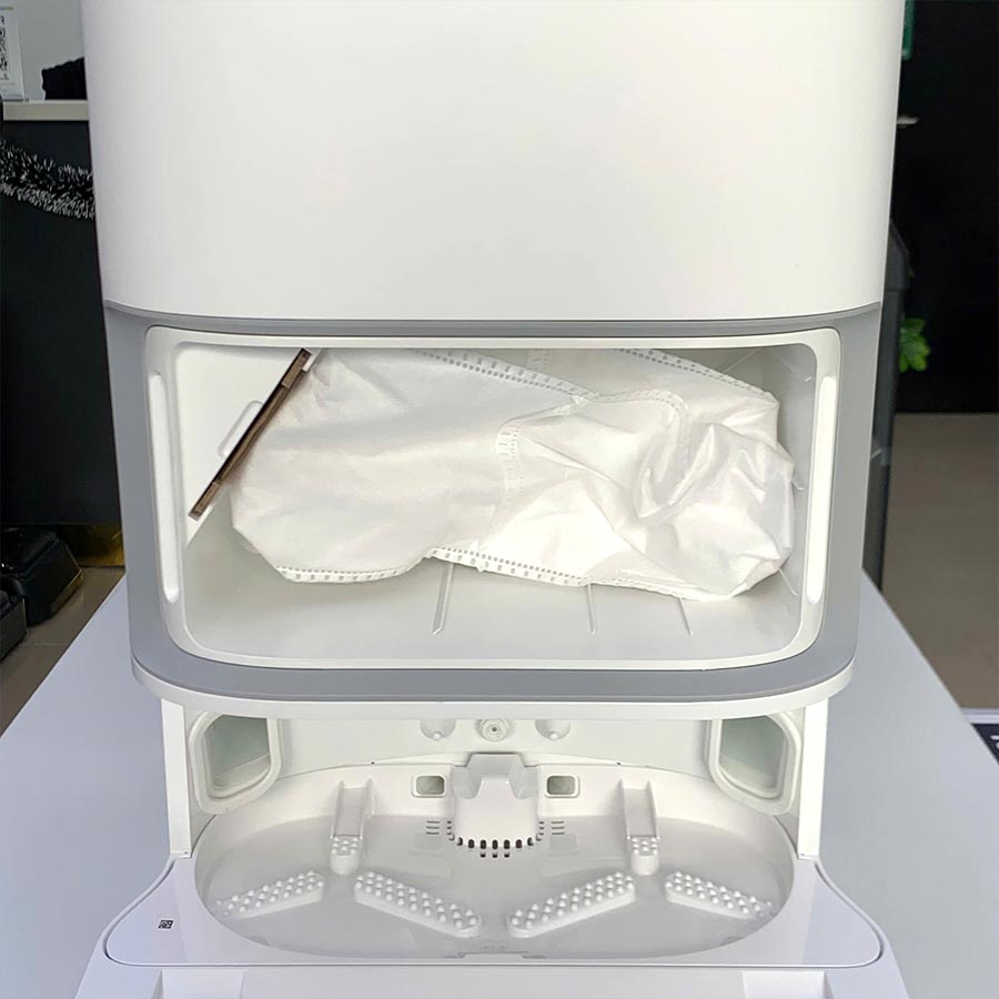 • Giặt giẻ nước nóng: Trạm sạc tự động giặt khăn bằng nước nóng 60°C, đánh bay dầu mỡ và sấy khô khí nóng 45°C.