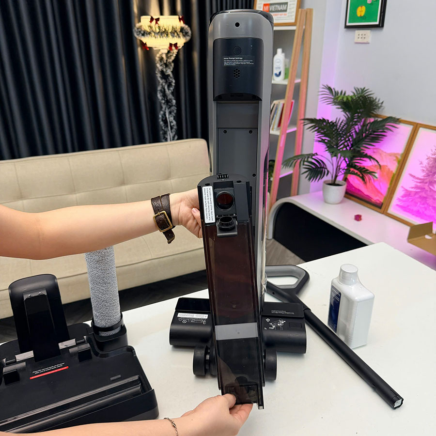 • Lực hút & Pin: Động cơ 14.500Pa, pin chạy liên tục 35 phút với bình nước sạch lớn 900ml.