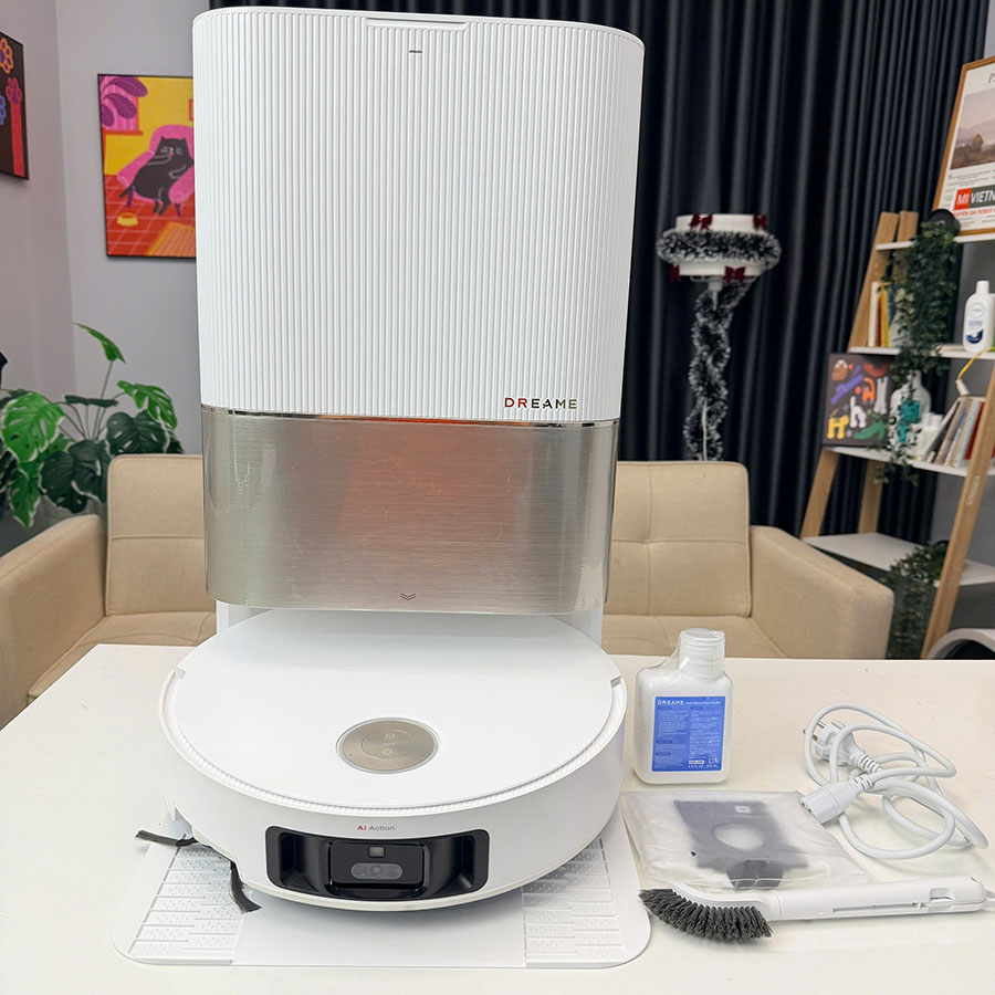 • Hiệu năng: Lực hút 8.300Pa, camera AI kết hợp đèn LED soi vật cản trong bóng tối.