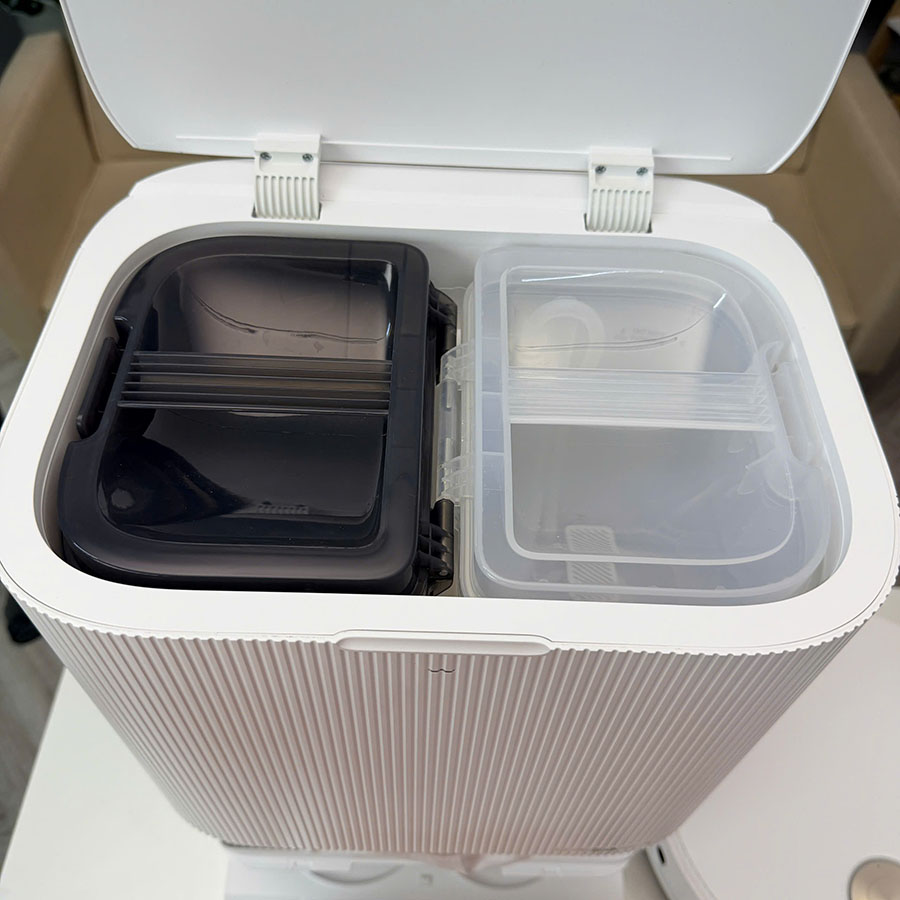 • Rảnh tay 75 ngày: Hộp rác và bình nước dung tích lớn hơn, giúp bạn ít phải đổ rác hơn.
